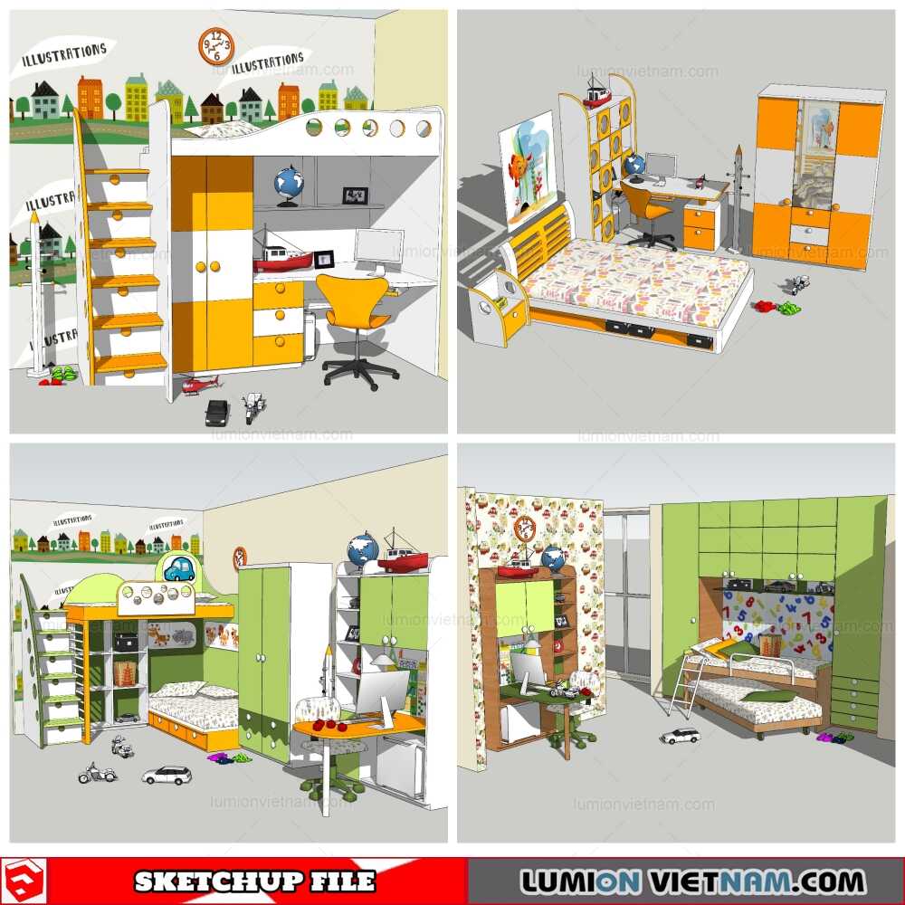 Combo Kids Bed – Sketchup Models By Nha Tay