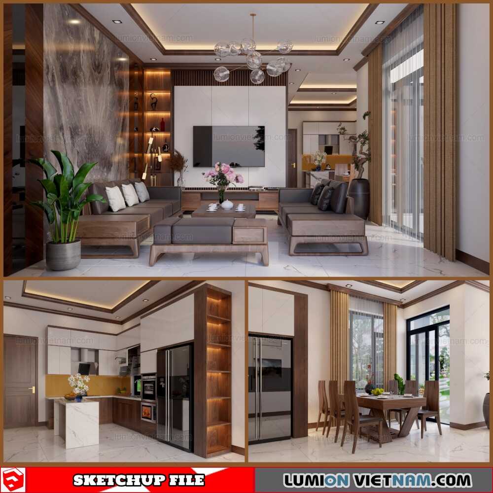 Living- Kitchenroom – Sketchup Interior Scene By Khac Tuan Free Download !