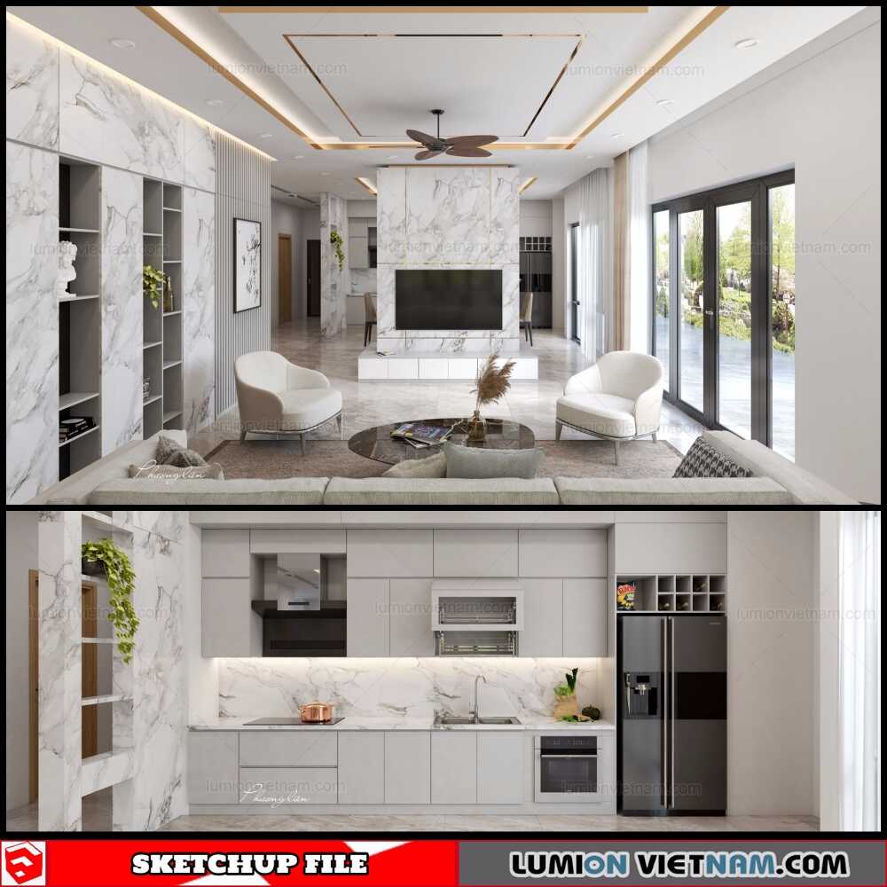 Living room And Kitchen – Sketchup Interior Scene By Ph Lien Free Download !