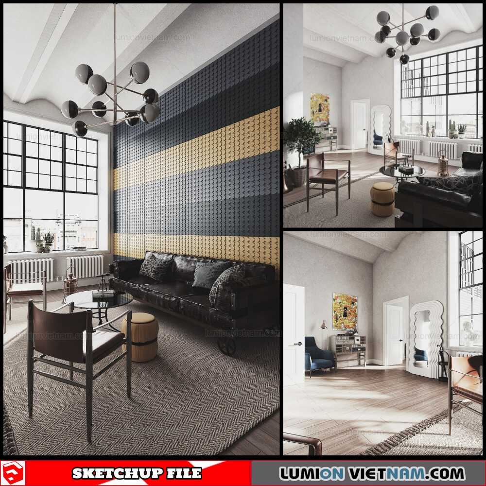 Living room – Sketchup Interior Scene By Chau Hung Free Download !