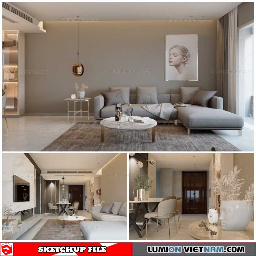 Living room – Sketchup Interior Scene By Quoc Vi Phan Free Download !