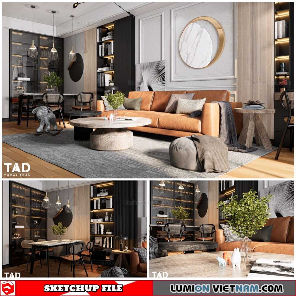 Living room – Sketchup Interior Scene By Thoai Tran Free Download !