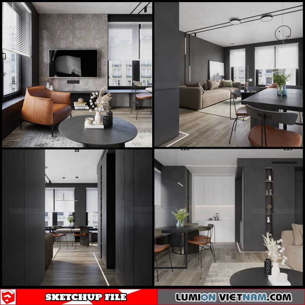 Living room – Sketchup Interior Scene By Trong Thanh Free Download !